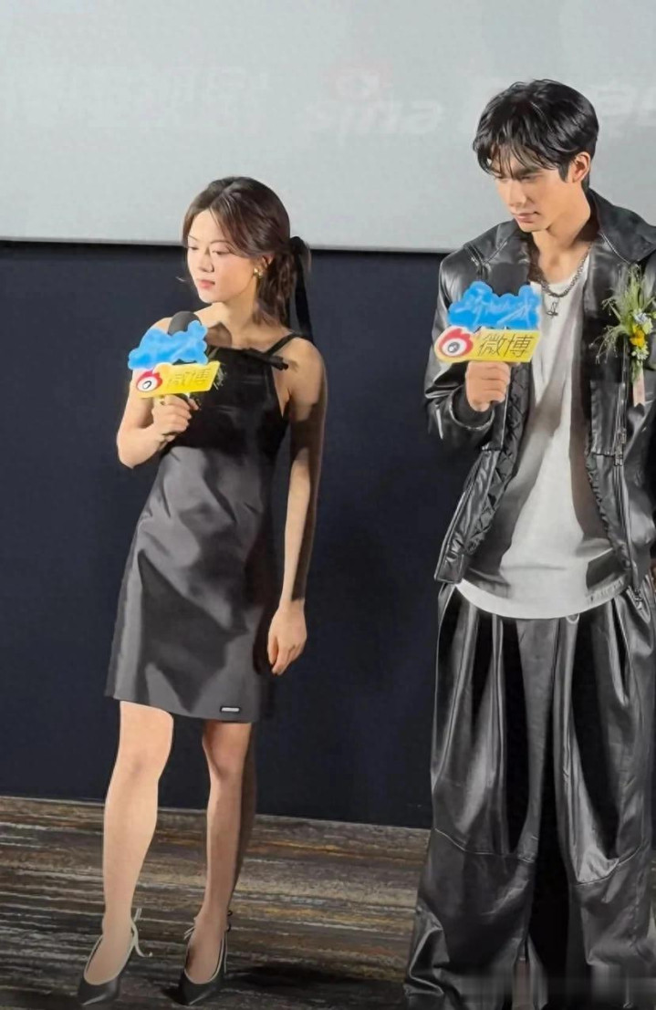 赵今麦穿戴玄色吊带皮裙,头发上还戴了发饰,便是看着不若何颜面,宋威龙亦然上身一套皮衣,松松垮垮的,再加上油头造型,看着略显浓重,两东说念主的造型齐挺一般的。