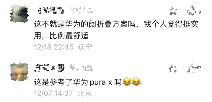 但其实没法参考,因为三星 Wide Fold 和折叠屏 iPhone 齐属于「横向大折」,而华为 Pura X 则是「竖向小折」,况兼它们的外屏也不相同。