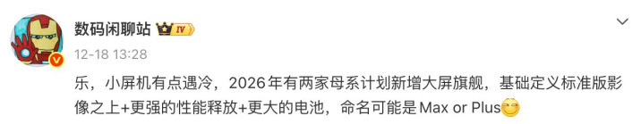 爆料知道,本年的小屏机有点卖不动,来岁将有两家厂商计算加多大屏旗舰。