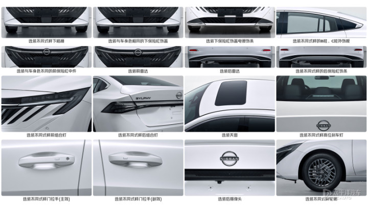 新款轩逸提供多种树立车型,前雷达、后雷达、后录像头、天窗等不同树立均有不同。此外前组合灯、后组合灯、不同神气高位刹车灯、不同神气主副驾门把手以及不同神气的B柱/C柱外饰板等,或在不同的车型上均有所不同。