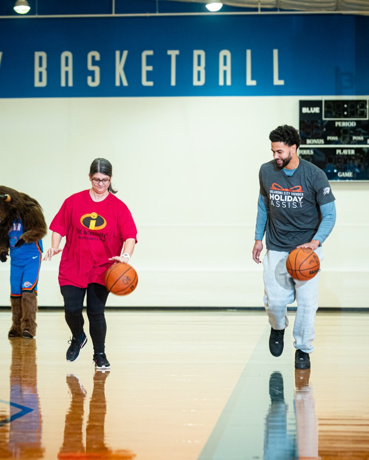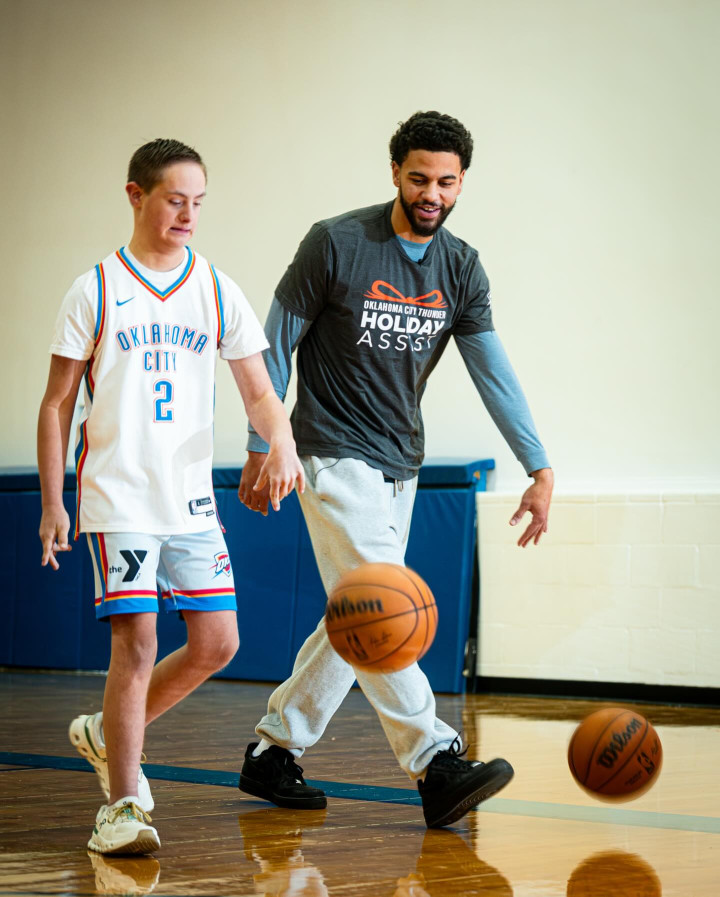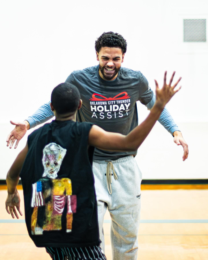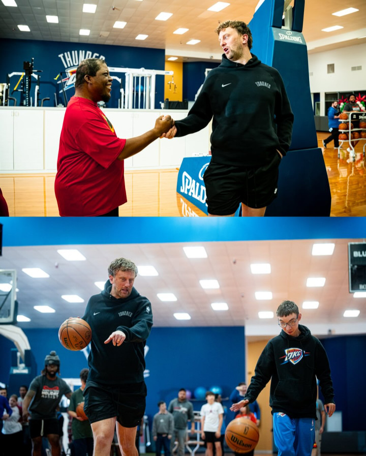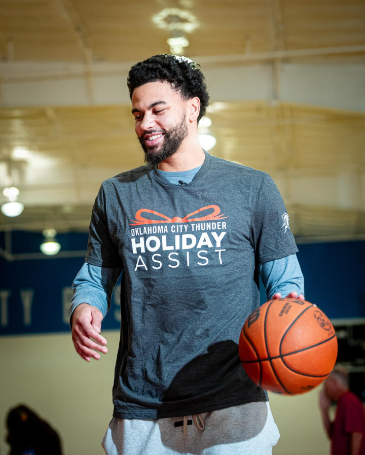 雷霆ins报说念,杰伦·威廉姆斯为@sooklahoma的孩子们举办了一场篮球考试营,提供节日助攻篮球活动⛹♂